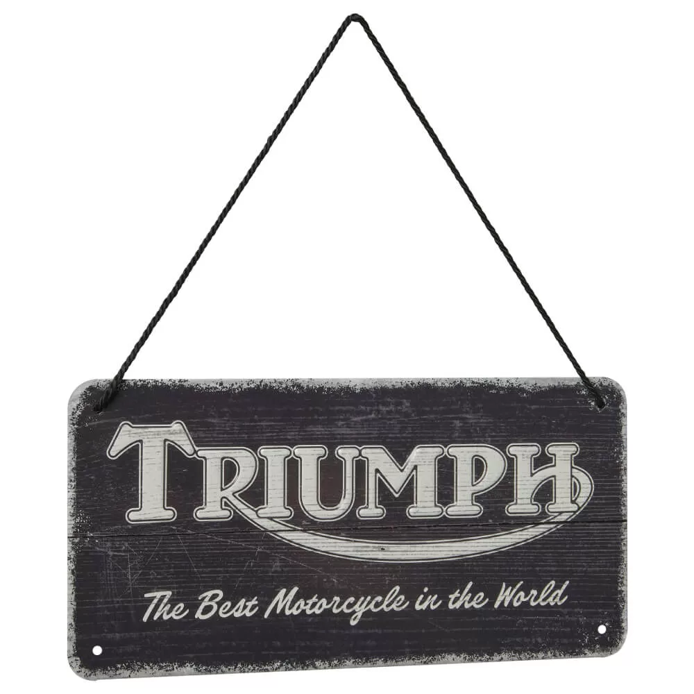 Geef elke ruimte een stoere, industriële uitstraling met het Triumph Workshop Hanging Sign. Perfect voor in de schuur, werkplaats of op een kantoor van elke motorliefhebber.